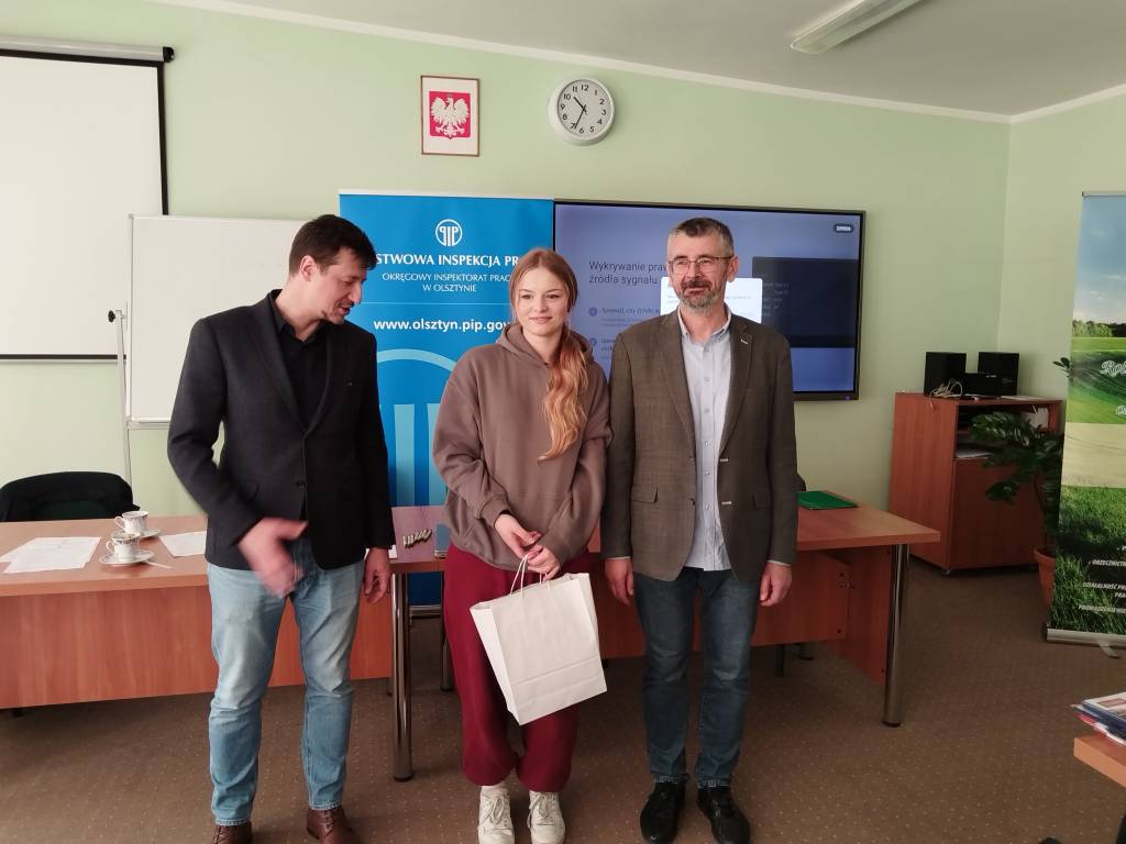 Po części szkoleniowej młodzież przystąpiła do konkursu wiedzy z zakresu przepisów BHP w rolnictwie. Najlepszym uczestnikom wręczono nagrody, z czego nagrody za zajęcie II i III miejsca zostały ufundowane przez Okręgowy Inspektorat Pracy w Olsztynie. Uroczystego wręczenia dokonał starszy inspektor pracy Andrzej Mitros.