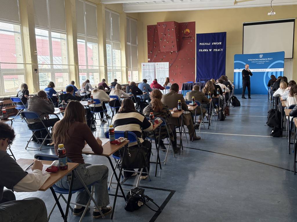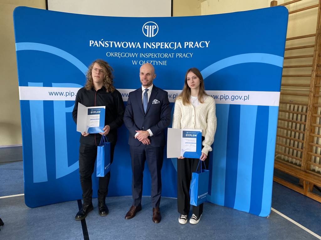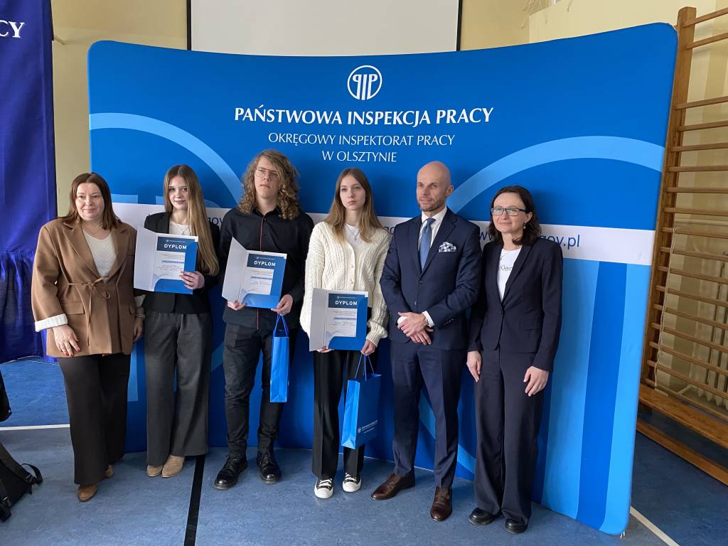 W dniu 02 marca 2026 r. w Szkole Policealnej im. prof. Zbigniewa Religi w Olsztynie, został rozstrzygnięty etap regionalny XIII edycji konkursu dla uczniów szkół ponadpodstawowych „Poznaj swoje prawa w pracy”, który zorganizował Okręgowy Inspektorat Pracy w Olsztynie w ramach programu "Kultura bezpieczeństwa".