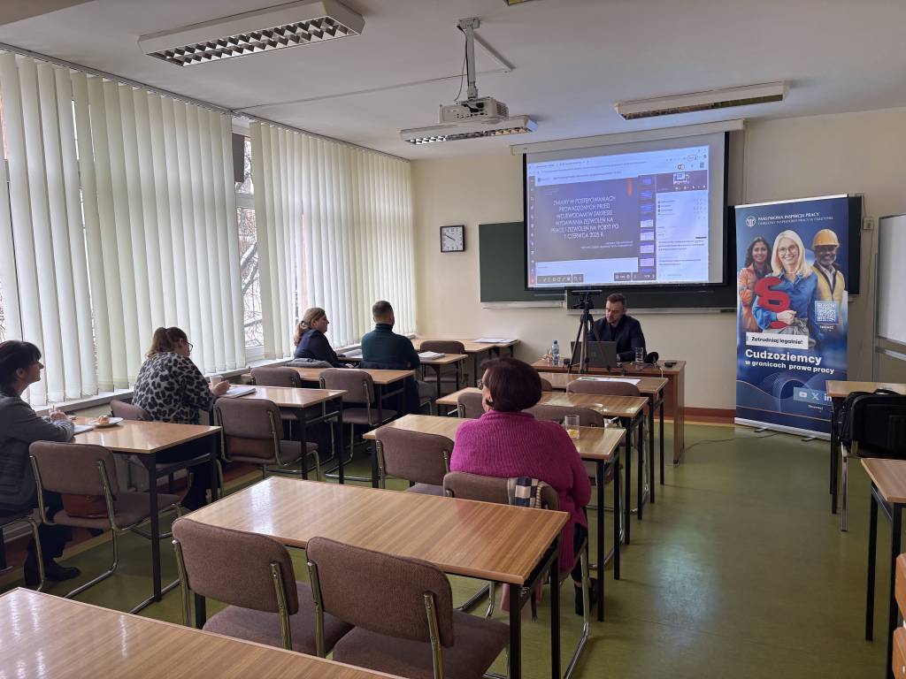 Z ramienia Okręgowego Inspektoratu Pracy w Olsztynie szkolenie poprowadził starszy inspektor pracy Krystian Kubrak, który omówił kluczowe zagadnienia dotyczące legalnego zatrudniania cudzoziemców. W szczególności przedstawił:
