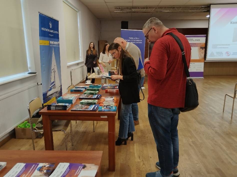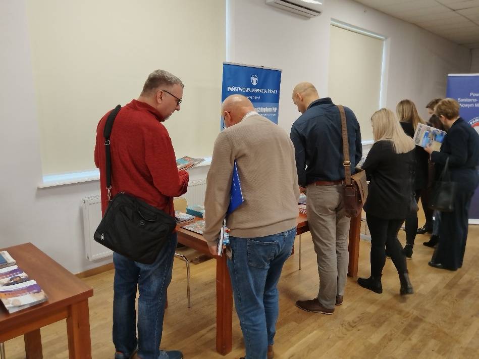 Podczas konferencji funkcjonowało także stoisko informacyjne Okręgowego Inspektoratu Pracy w Olsztynie, gdzie uczestnicy mogli uzyskać porady ekspertów oraz zapoznać się z materiałami informacyjnymi i ulotkami dotyczącymi bezpiecznych i higienicznych warunków pracy.