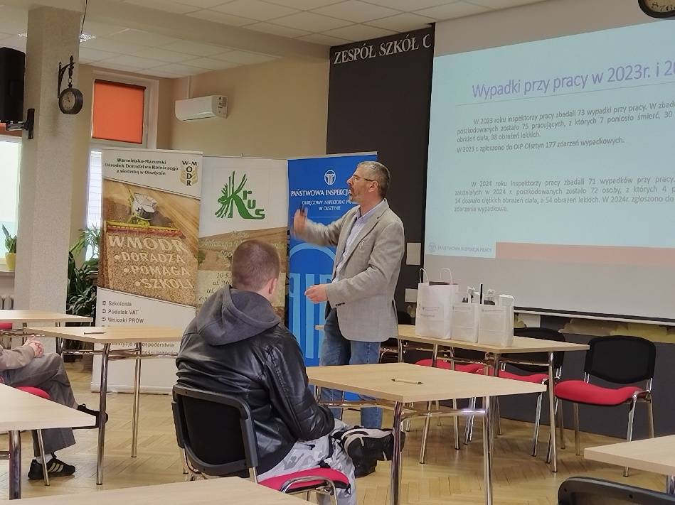 Zajęcia dla uczniów poprowadził starszy inspektor pracy Andrzej Mitros z Okręgowego Inspektoratu Pracy w Olsztynie.