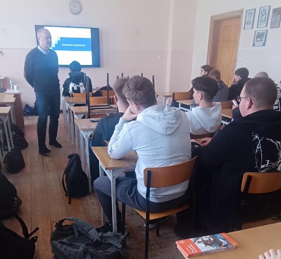 W ramach programu edukacyjnego „Kultura bezpieczeństwa” w dniu 21.04.2026 r. w Zespole Szkół Ponadpodstawowych nr 2 im. Elizy Orzeszkowej w Bartoszycach odbyło się szkolenie poświęcone zagadnieniom związanym z zatrudnianiem osób młodocianych. Zajęcia przeprowadził starszy inspektor pracy – specjalista, pan Jacek Żerański.
