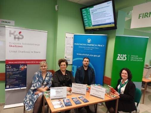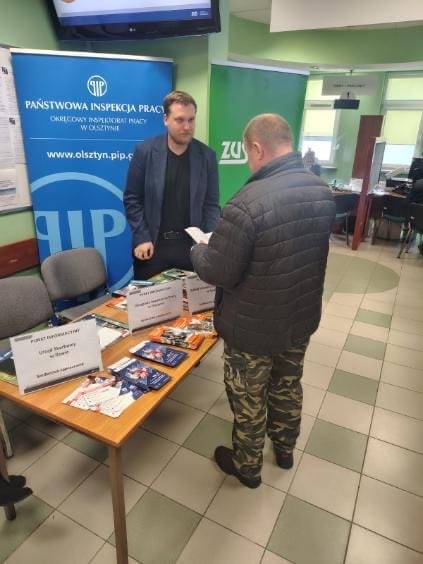 W dniu 21 listopada 2025 r. przedstawiciele Okręgowego Inspektoratu Pracy w Olsztynie uczestniczyli w wydarzeniu organizowanym w Inspektoracie ZUS w Iławie w ramach Światowego Tygodnia Przedsiębiorczości. Podczas spotkania specjaliści OIP prowadzili punkt informacyjno-konsultacyjny, udzielając przedsiębiorcom bezpłatnych porad dotyczących prawa pracy oraz bezpieczeństwa i higieny pracy.