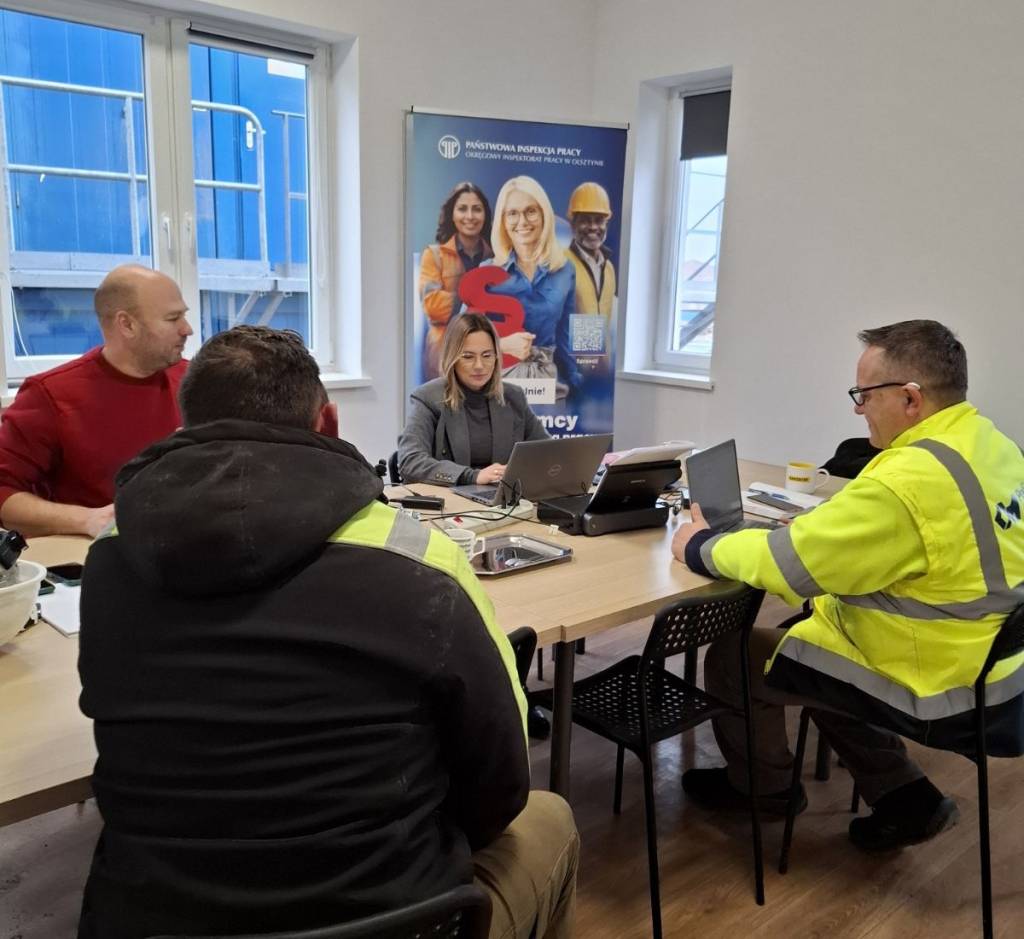 18 grudnia 2025 r. na terenie dużej inwestycji o charakterze strategicznym, zlokalizowanej w województwie warmińsko-mazurskim, inspektorzy pracy Okręgowego Inspektoratu Pracy w Olsztynie zorganizowali punkt informacyjny poświęcony zagadnieniom legalnego zatrudniania cudzoziemców.