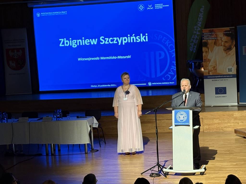 Następnie głos zabrali Jarosław Kowalczyk, Okręgowy Inspektor Pracy w Olsztynie, oraz Zbigniew Szczypiński, Wicewojewoda Warmińsko-Mazurski.