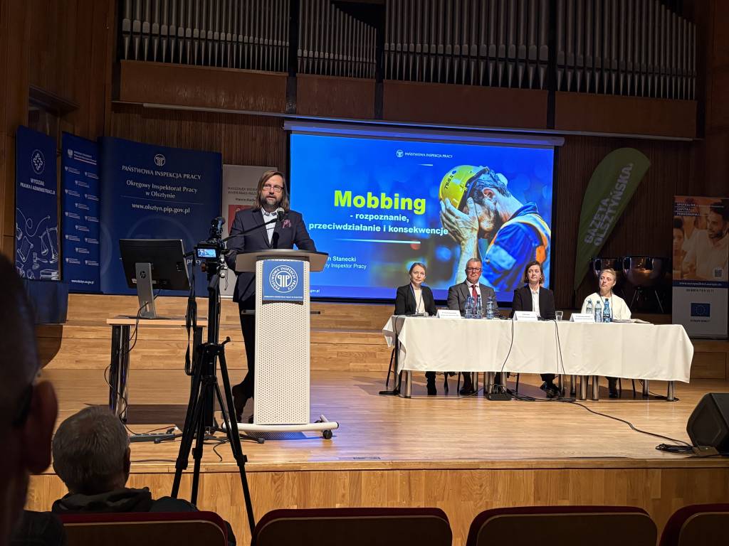 Wśród uczestników konferencji obecny był również Marcin Stanecki, Główny Inspektor Pracy, który był zarówno prelegentem, jak i panelistą. W swoim wystąpieniu zwrócił uwagę na znaczenie działań edukacyjnych i profilaktycznych podejmowanych przez Państwową Inspekcję Pracy w zakresie przeciwdziałania mobbingowi i innym negatywnym zjawiskom psychospołecznym.