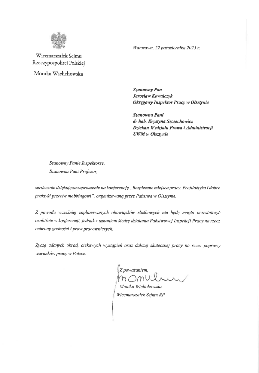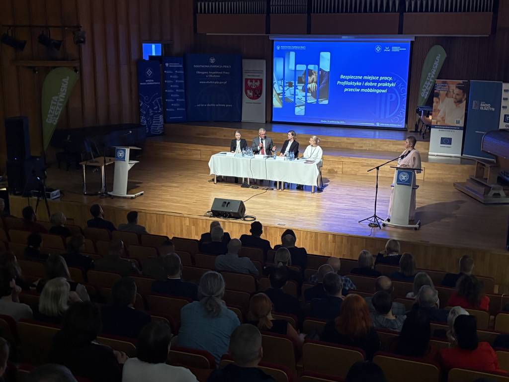 Konferencja „Bezpieczne miejsce pracy. Profilaktyka i dobre praktyki przeciw mobbingowi” potwierdziła, że rozmowa o szacunku, bezpieczeństwie i odpowiedzialności w miejscu pracy jest nie tylko potrzebna, ale też możliwa – w atmosferze współpracy, wrażliwości i wzajemnego zrozumienia.