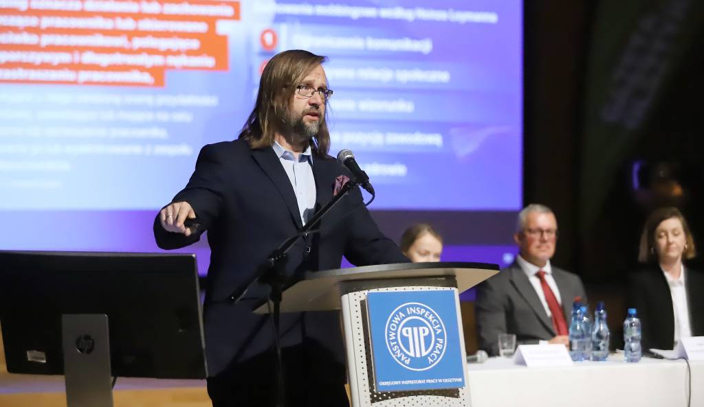 Wśród uczestników konferencji obecny był również Marcin Stanecki, Główny Inspektor Pracy, który był zarówno prelegentem, jak i panelistą. W swoim wystąpieniu zwrócił uwagę na znaczenie działań edukacyjnych i profilaktycznych podejmowanych przez Państwową Inspekcję Pracy w zakresie przeciwdziałania mobbingowi i innym negatywnym zjawiskom psychospołecznym.