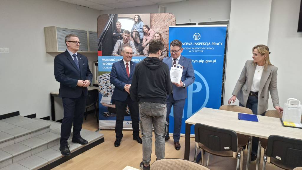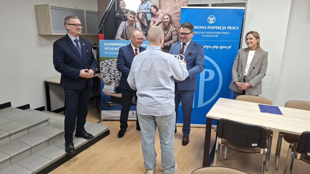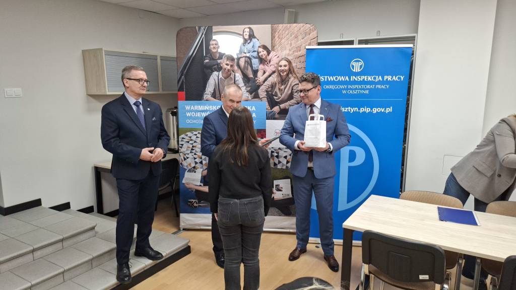 Nagrody ufundowane przez Okręgowy Inspektorat Pracy w Olsztynie wręczył laureatom Okręgowy Inspektor Pracy Pan Jarosław Kowalczyk.