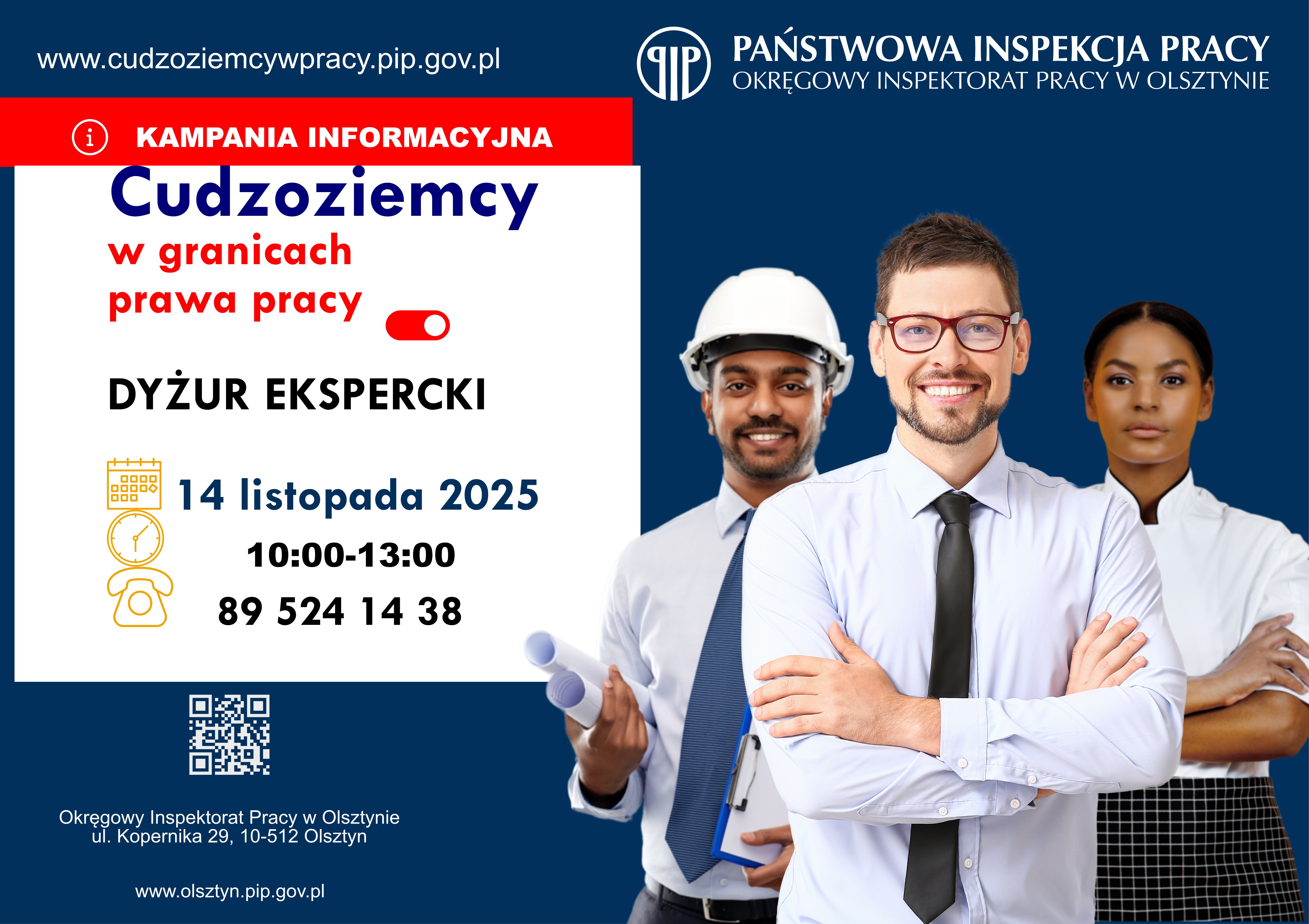 Podczas dyżuru eksperci Państwowej Inspekcji Pracy będą udzielać bezpłatnych porad dotyczących legalności zatrudnienia cudzoziemców, zasad wykonywania pracy w Polsce, obowiązków pracodawców i praw osób pracujących spoza kraju.